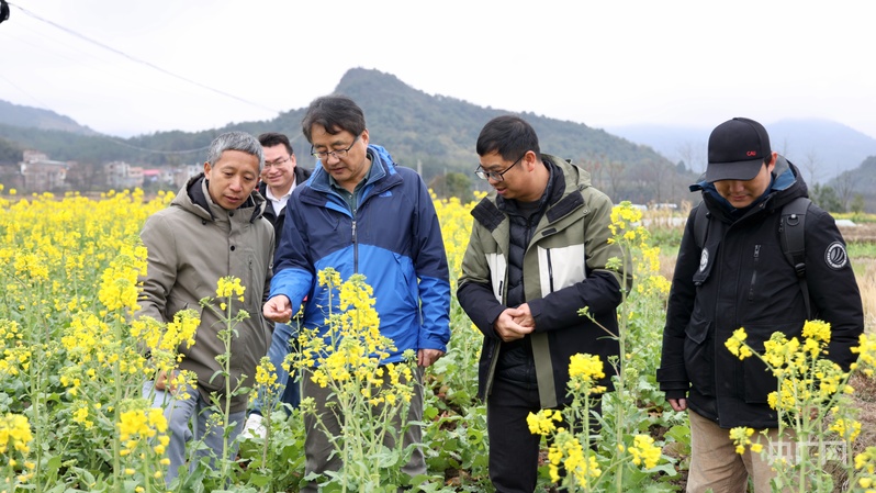 中国农业大学教授乐捷带领团队考察湾井镇油菜种植情况(央广网发 唐文勇 摄)