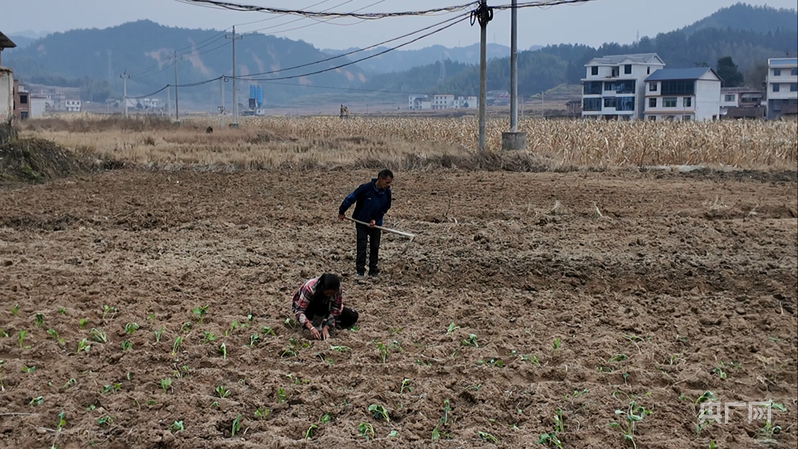 罗春阳在田里播种油菜种子(央广网记者黄珂岚 摄)