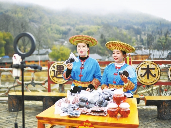 2月5日,崇木凼村村民在进行土特产直播带货。