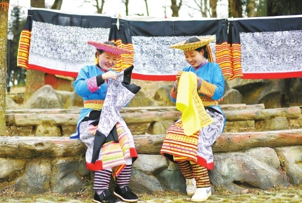 返乡瑶妹奉娇妹在吊脚楼开起民宿,创办“九儿旅拍”工作室,旺季4个月能挣十几万元。“现在越来越多的姐妹回来了。”她边整理花瑶服饰边说,全村像她这样搞旅游的有200余人,民宿发展到60多家。
