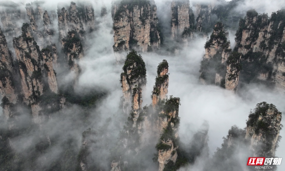 雨后的湖南张家界国家森林公园,云雾变幻飘逸。