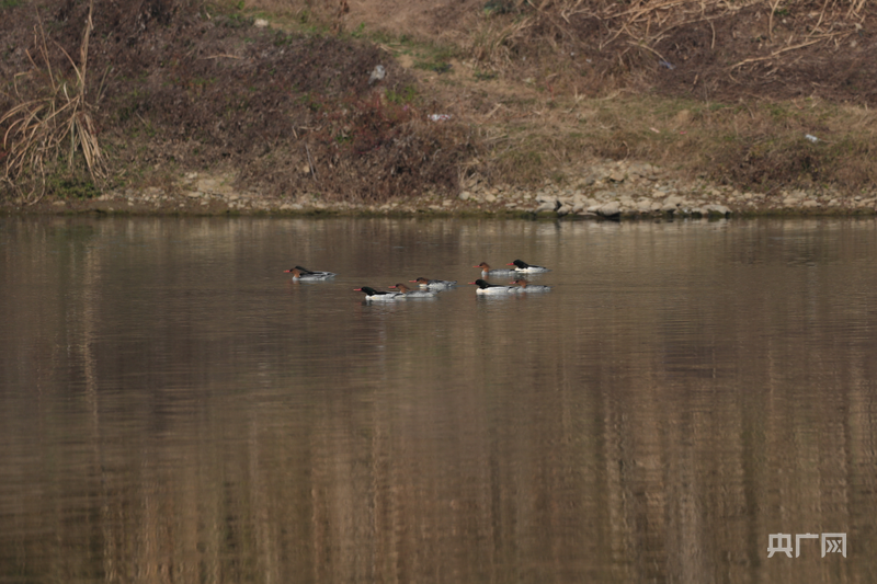 在平溪江游玩的中华秋沙鸭(央广网发 湖南洞口平溪江国家湿地公园 供图)