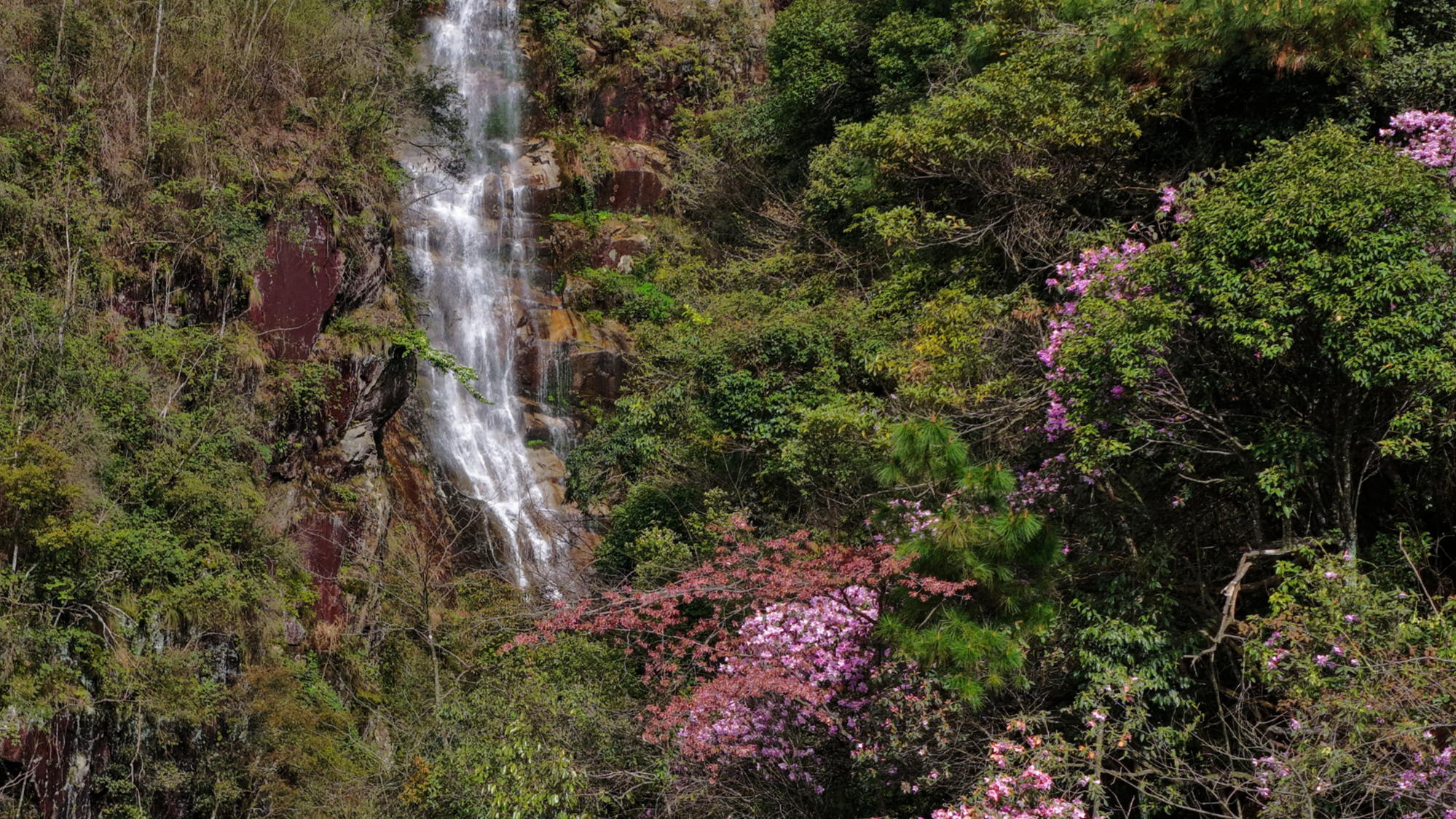 舜皇山瀑布与鹿角杜鹃(朱巨滨 摄)