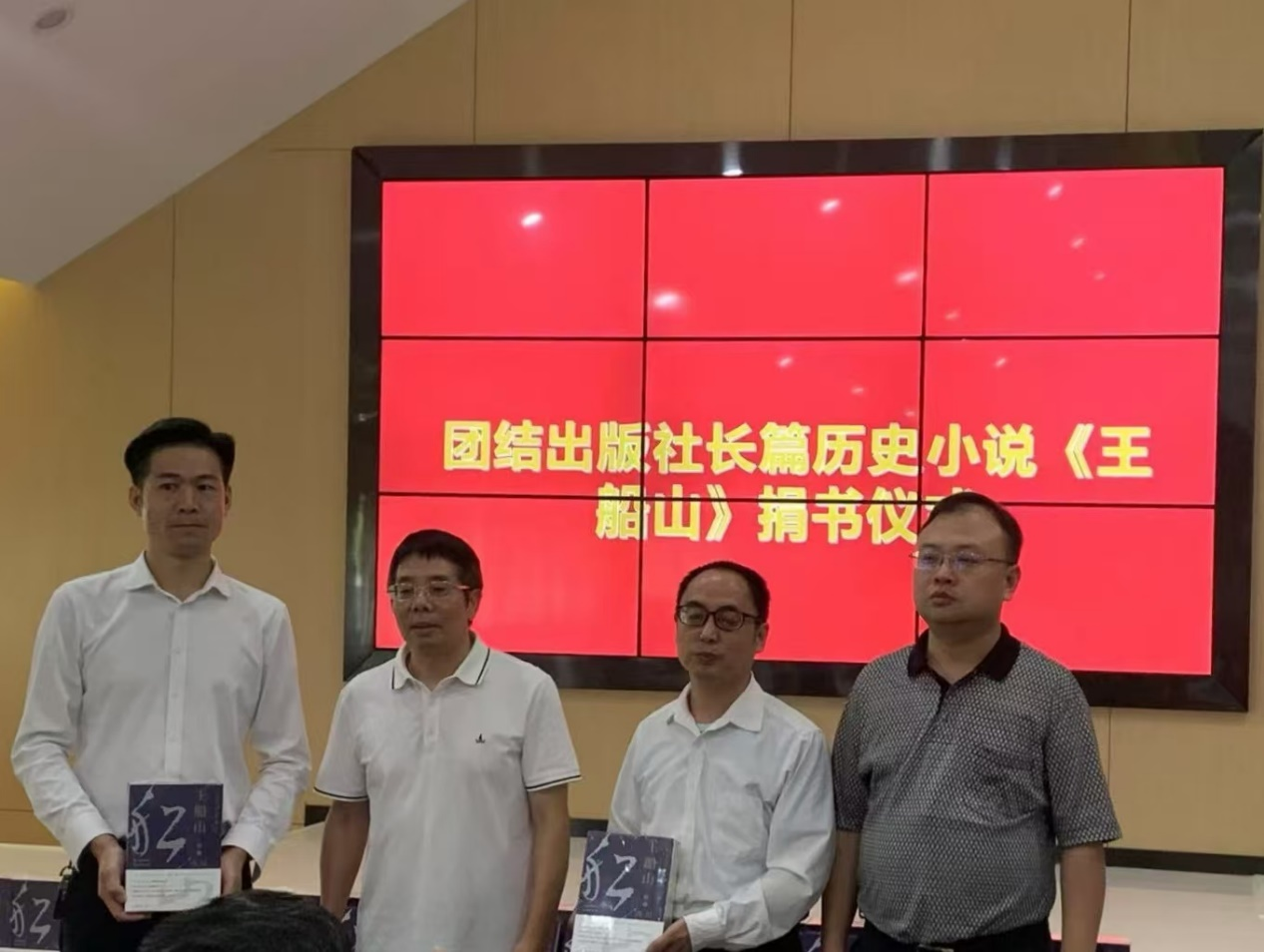 在湘西草堂的公祭活动结束后,与会人员前往船山故居多功能会议室,听取《王船山》背后的故事,见证团结出版社的捐书义举。