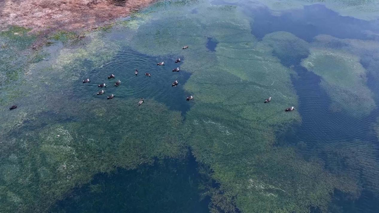 “我们从八月份以来到现在处于一个枯水期阶段,现在我们看到的这个洲滩面积比往年都要大,水草旺盛,今年的整个水质比往年都要好,水质清澈见底,才能形成这种‘水清岸绿’之景,往年是看不到这种情景的。”湖南衡山萱洲国家湿地公园管理处科研监测股股长阳辉说道。
