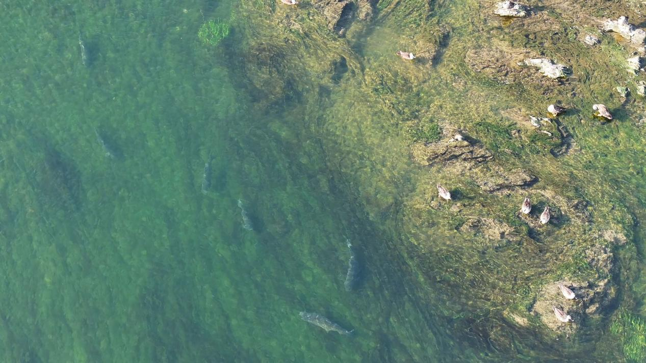 鱼儿在水中自在游弋与岸边景致构成绝佳画面(向微 摄)