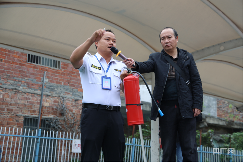 消防员为师生讲解灭火器使用等消防安全知识(央广网发 蒋彦斌 摄)