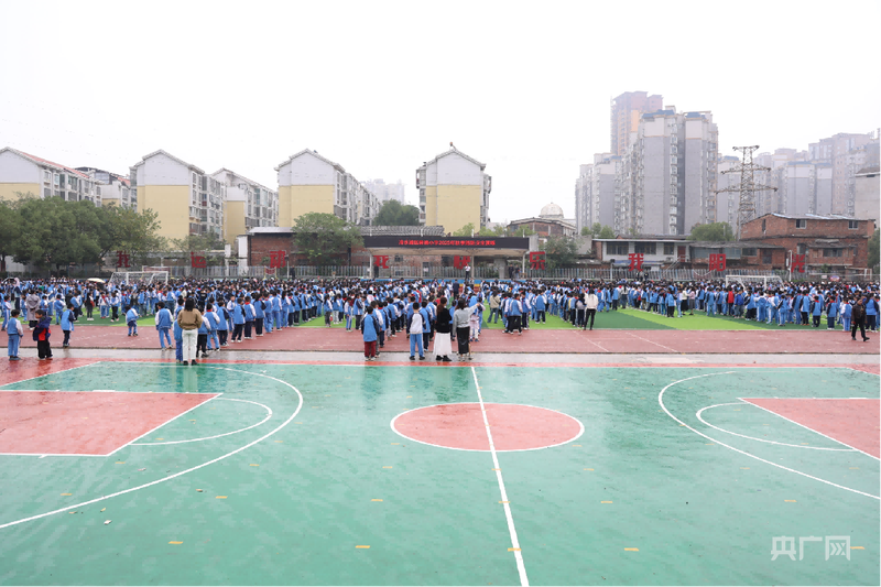 同学们迅速到达操场集合(央广网发 李秋燕 摄)
