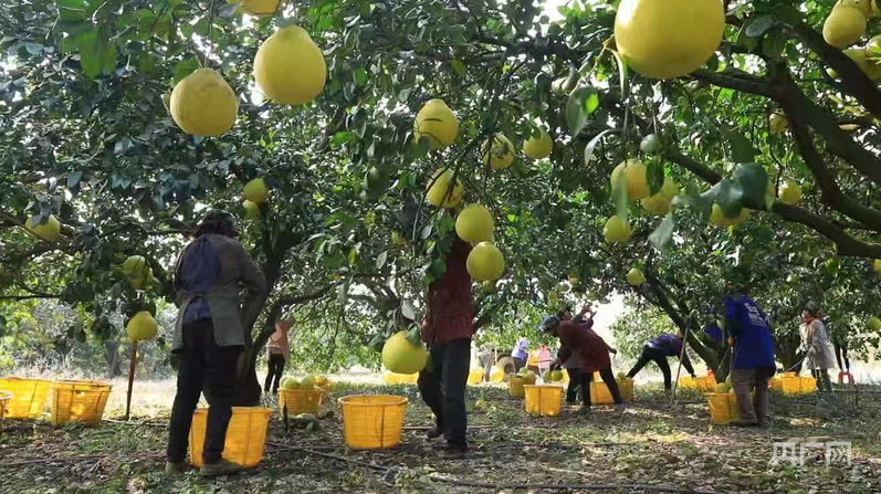 央广网永州11月12日消息(记者 黄珂岚 通讯员 田海忠 谢文彬)连日来,湖南省永州市江永县13.8万亩香柚进入成熟采摘季,果园内果农忙碌采收,产业园里现代化生产线高效运转,今年香柚产量、品质双提升,为果农增收、乡村振兴注入“甜蜜”动力。