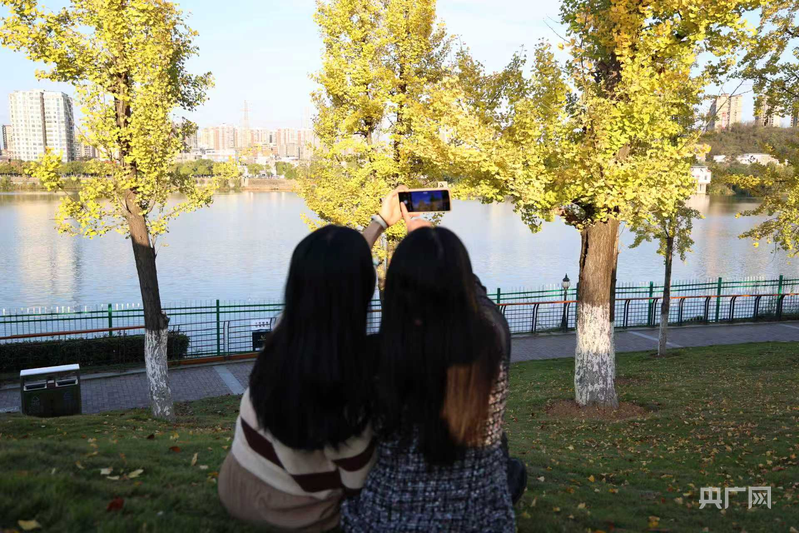 “今天天气特别好,我们来到这里赏银杏叶,今天秋高气爽的,太阳照得正好,心情也很美丽,我们姐妹约出来跳跳舞开心一下,放松一下心情。”市民邓女士说道。