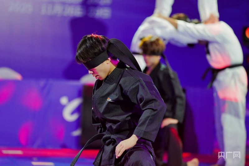 “虽然面对全国性舞台压力不小,但我们为这次演出准备了很长时间,最终效果特别好,非常满足我们心中的预期。”湖南省跆拳道示范团成员薛煊在演出后表示。他特别提到,“蒙眼击破”环节最具亮点——“表演者需要蒙住眼睛,凭借铃铛声判断方位进行移动并击破木板,非常考验技术和心理。”