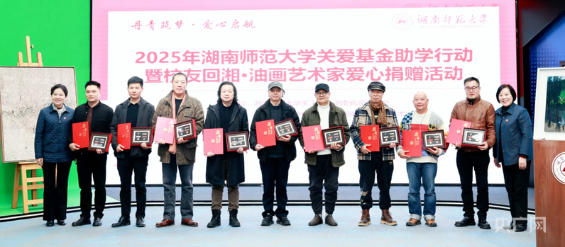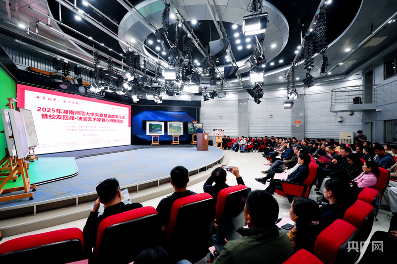 央广网长沙12月23日消息(记者 张兴莎)为更好地做好关心下一代工作,落实湖南省委、省政府“校友回湘”部署,12月22日,湖南师范大学关工委、湖南省油画学会联合主办“丹青筑梦爱心启航”2025年湖南师范大学关爱基金助学行动暨校友回湘·油画艺术家爱心捐赠活动。著名油画艺术家、爱心企业家和学校师生共100余人一同见证这温暖的时刻。