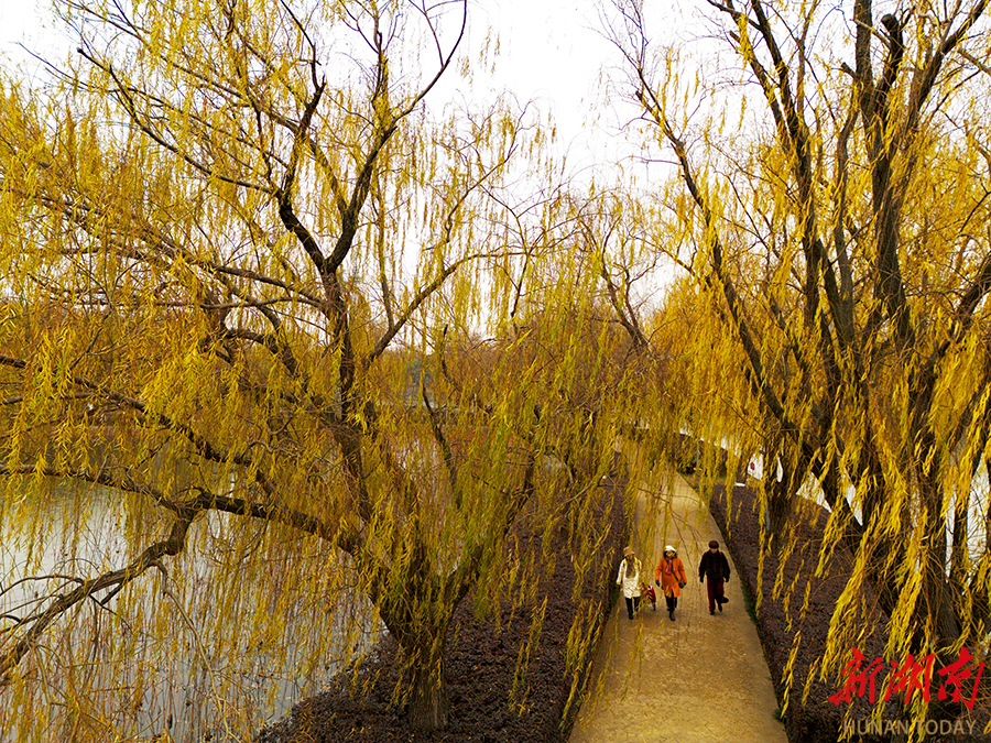 1月12日,湖南烈士公园,落叶乔木与清澈湖面相映成趣,静谧优美的环境吸引市民前来散步小憩,享受闲暇时光 。 林道辉 摄(湖南图片库)
