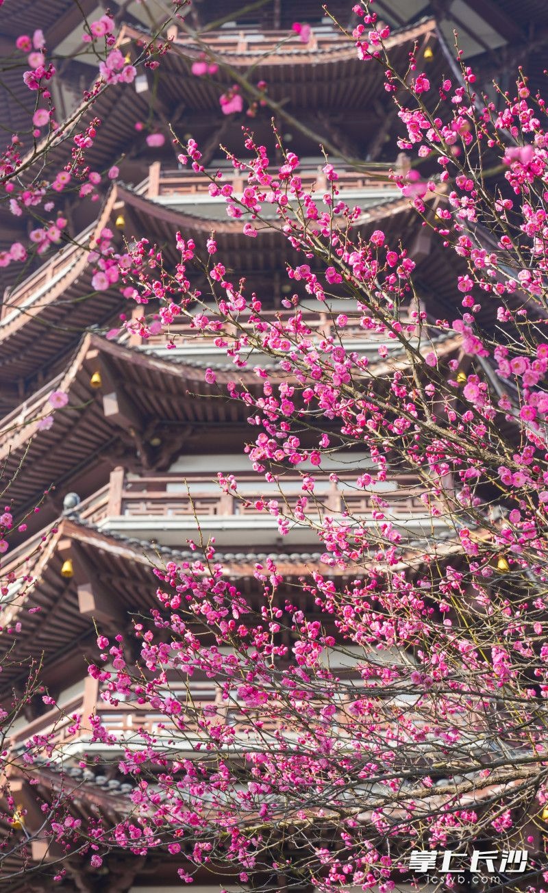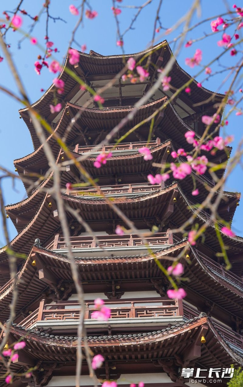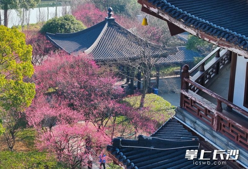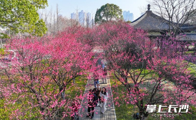 洋湖湿地公园白鹭塔下的梅花盛开。均为长沙晚报全媒体记者 邹麟 摄