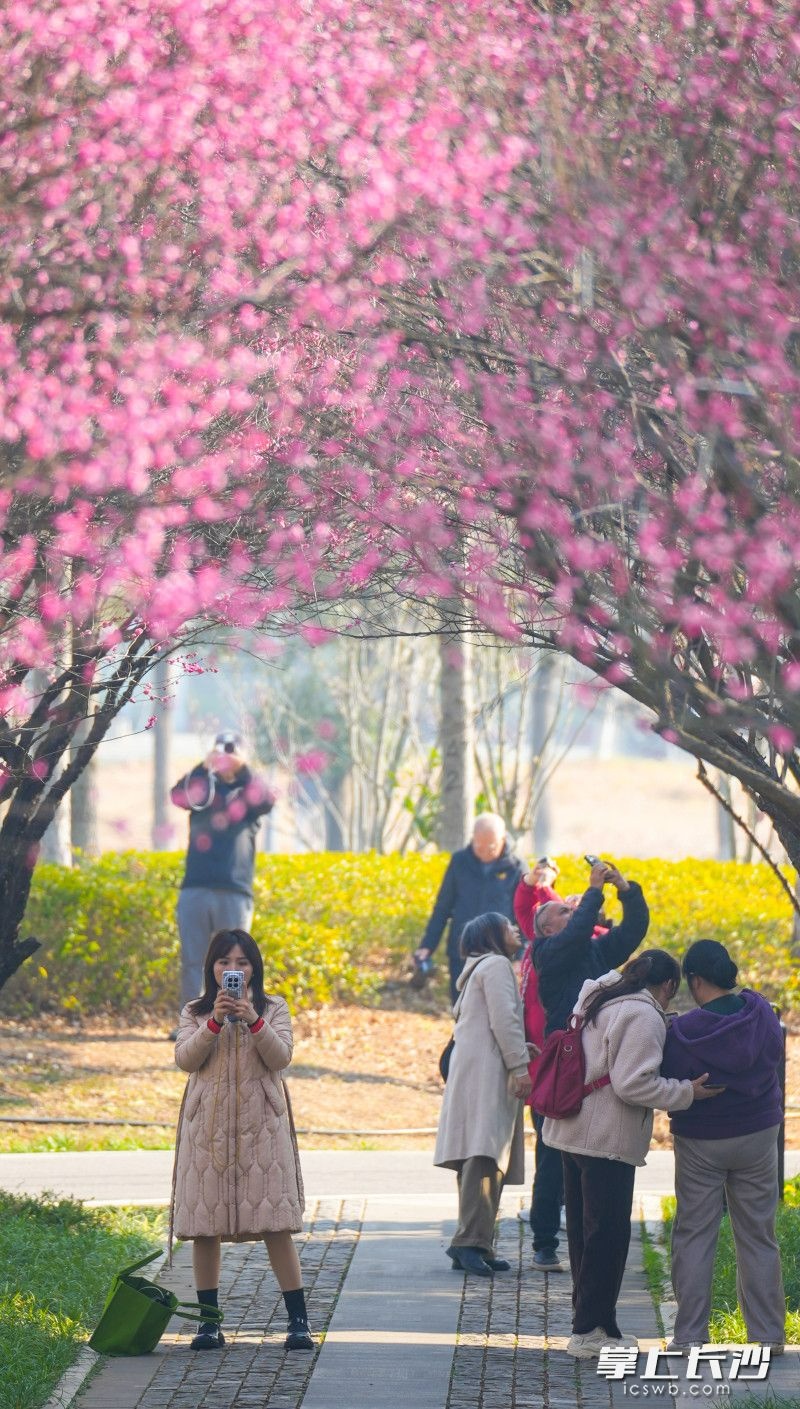 冬日的长沙,第一波梅花已悄然绽放。漫步洋湖湿地公园,缕缕暗香扑鼻而来,沁人心脾。白鹭塔下,两片梅林开得正盛,粉白与艳红交织成烂漫图景,引得不少市民驻足观赏、拍照打卡,定格这份独属于冬日的雅致与生机。(长沙晚报全媒体记者 邹麟)