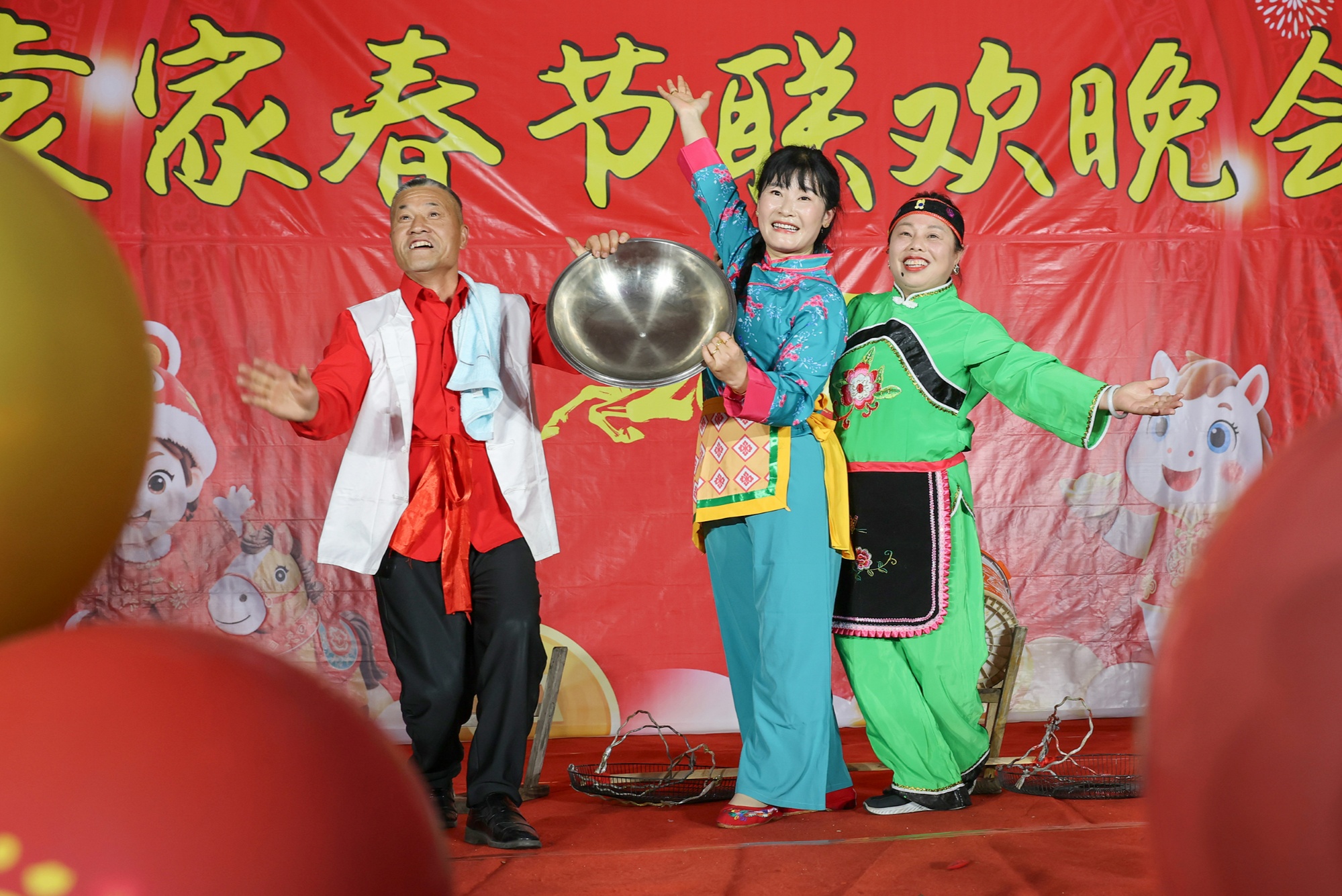 村民在表演新编花鼓戏《补锅》(陈卫平 摄)