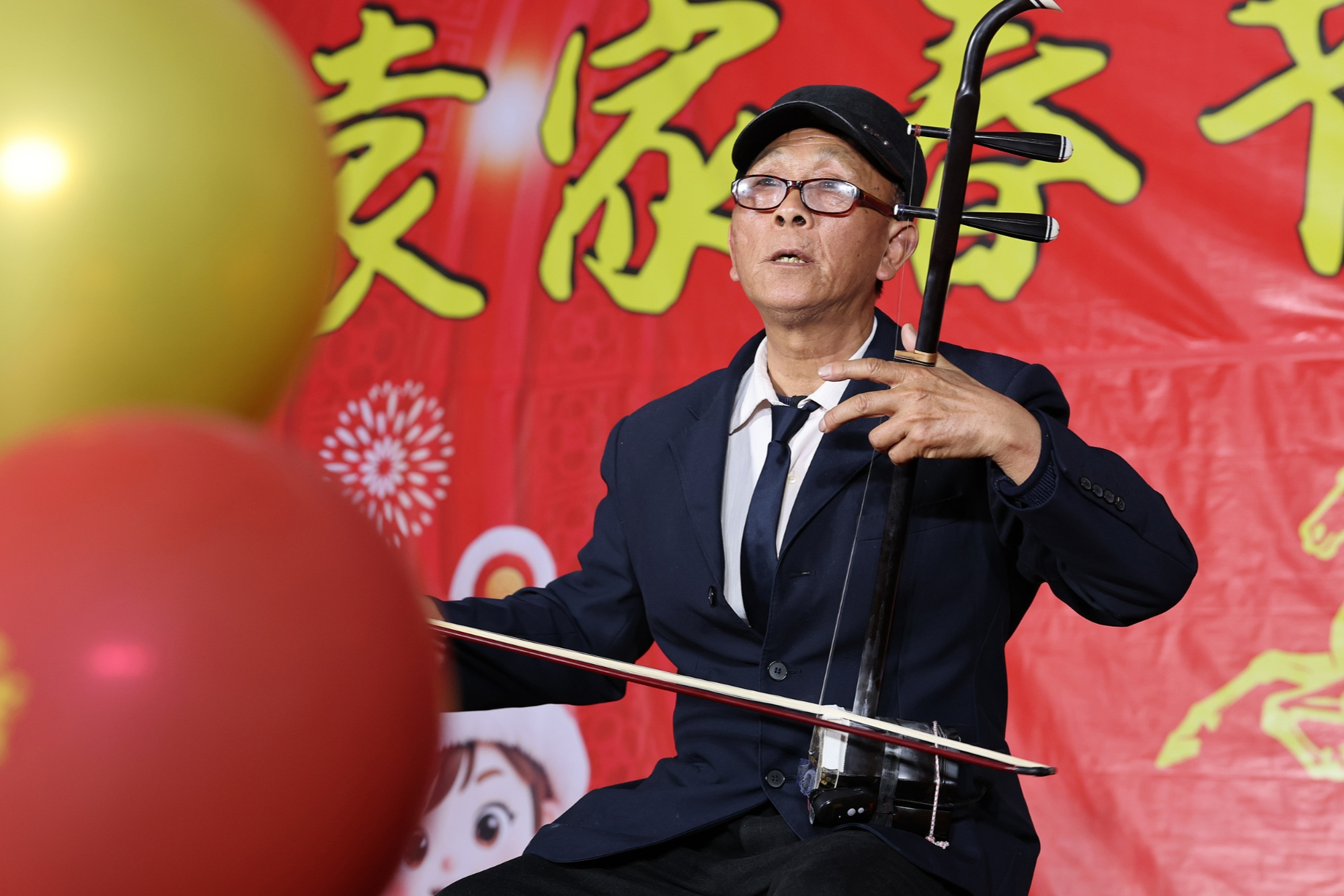 村民在表演二胡独奏《驼铃》(陈卫平 摄)