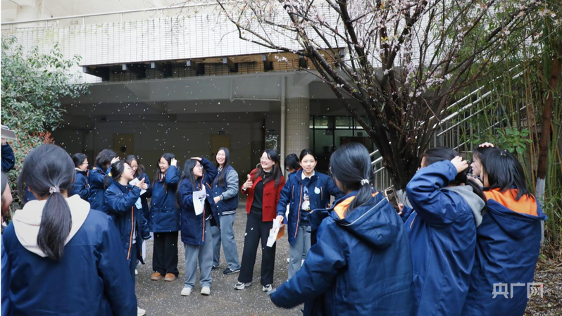 李佳琼带着学生走出教室,上了一堂春日里的语文课(央广网发 长沙市周南梅溪湖中学 供图)