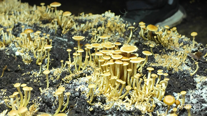 色泽金黄的芦苇菇(央广网记者黄珂岚 摄)