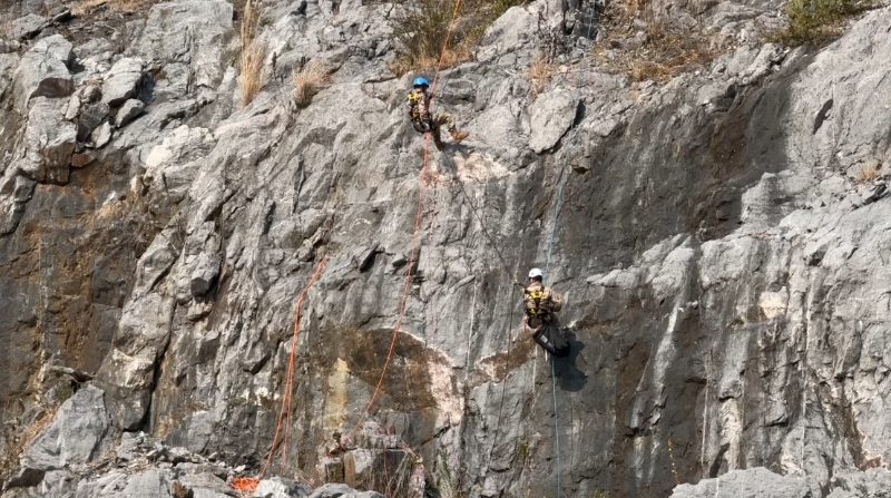 在训练现场,经验丰富的教官向民兵们详细讲解了绳索的使用方法,包括如何正确搭建绳索系统、进行绳索下降与上升等技术动作。此外,民兵们还进行了模拟救援演练,通过模拟山地事故场景,检验了他们在山地环境中的救援能力和应急反应能力。在演练中,民兵们迅速响应,有序展开救援行动,成功地将伤员从山地中救出,并进行了紧急救治和转运。