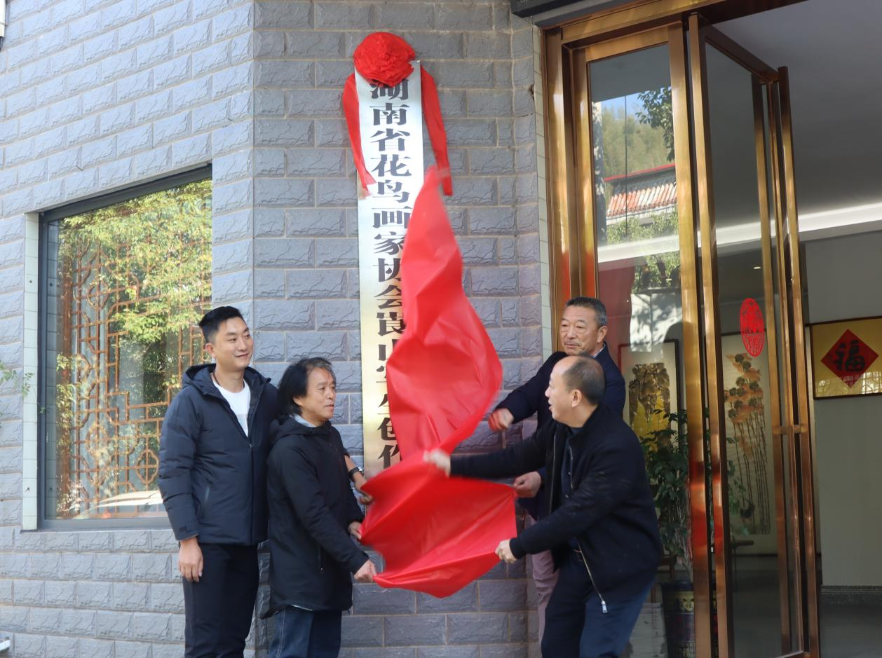 11月29日,湖南省花鸟画家协会崀山写生创作基地在新宁县崀山镇崀笏村崀山居落地揭牌。省美术家协会主席团委员、省花鸟画家协会主席肖剑,省花鸟画家协会副主席、市文联副主席、县文联主席朱戊扬以及县美术家协会等相关协会负责人和会员代表、社会各界人士参加揭牌仪式。