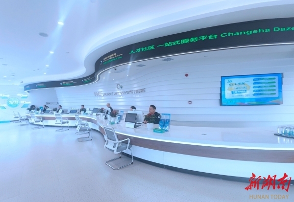 长沙大泽湖国际人才社区“一站式”服务平台大厅。范远志 摄