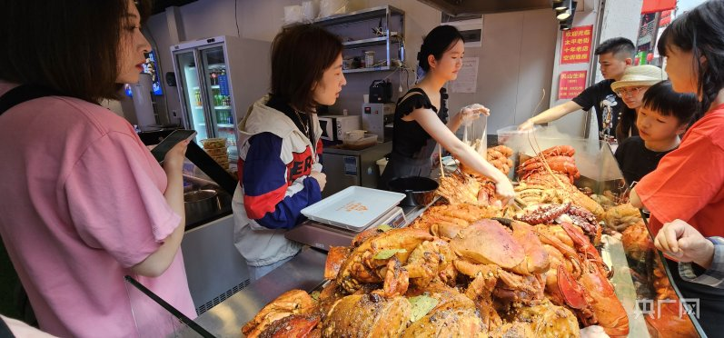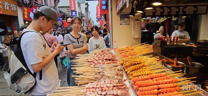 央广网长沙5月4日消息(记者 张志诚)清晨的太平老街恬静安逸,小巷空旷处,几名青年意犹未尽,仍在撸串聊天。一个姑娘拖着行李箱在青石板上慵懒行走,出街口时回眸浅笑,给老街留下青春一瞥。空气中残留美食与游客味道,两个多小时前——凌晨4时,这里仍然人头攒动,“长沙人不睡觉”的“习惯”传染了游客,见证并参与“不睡觉”成了许多人游长沙的理由。