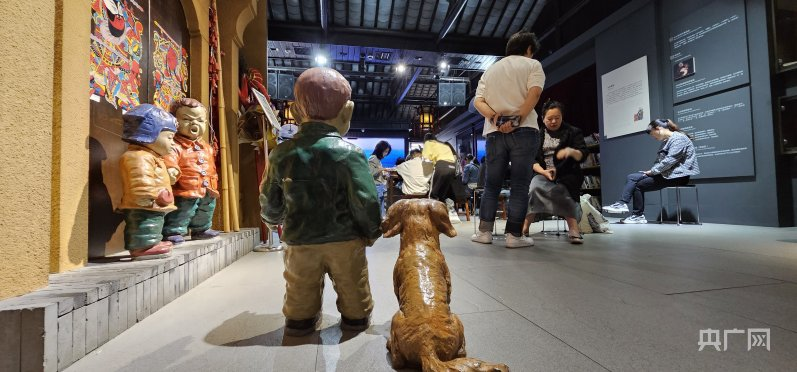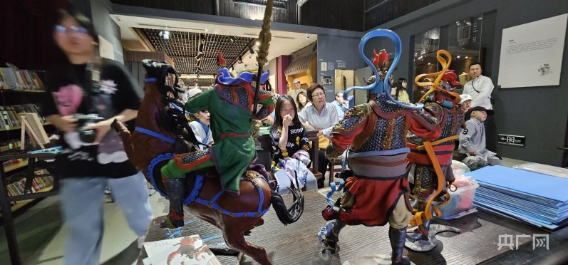 惟妙惟肖的面雕和在非遗展示中心休息的游客(央广网记者 张志诚 摄)