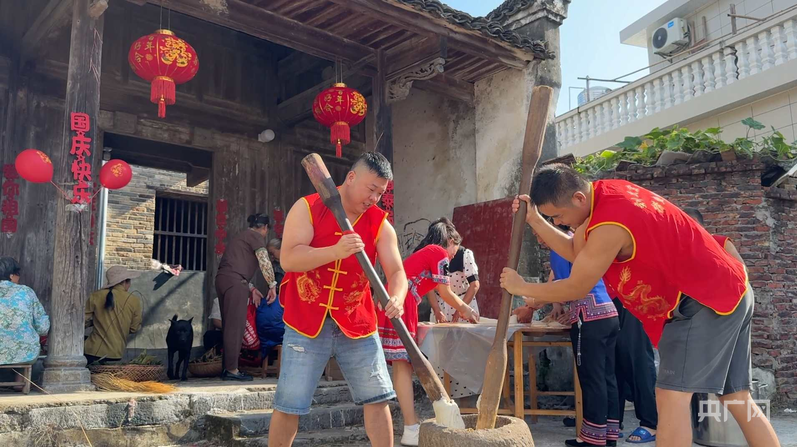村民在打糍粑、包粽子(央广网发 陈平成 摄)