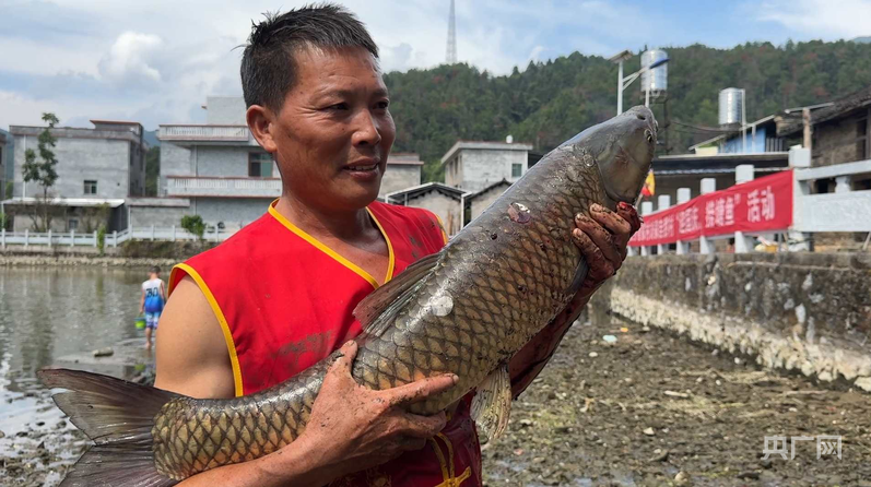 村民展示捞上来的鱼 (央广网发 陈平成 摄)