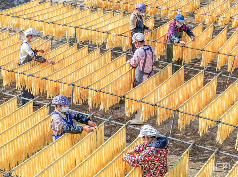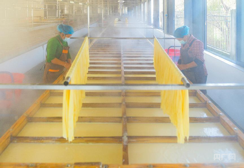 工人们正在晾晒腐竹(央广网发 蒋克青 摄)