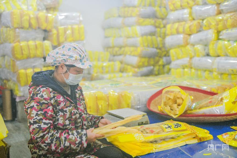 工人在包装腐竹(央广网发 蒋克青 摄)