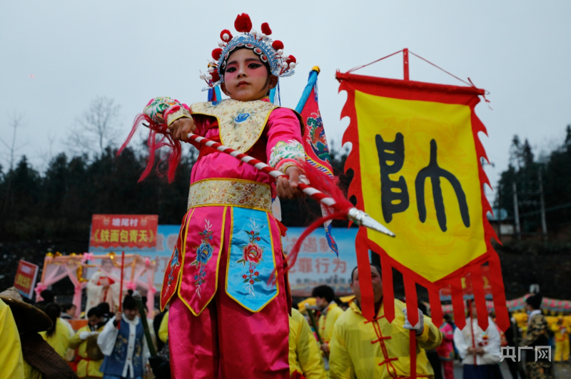 因“宜章夜故事”讲究轻、灵、便、趣,所以装扮故事的人物大多由孩童饰演(央广网发 廖泽华 摄)
