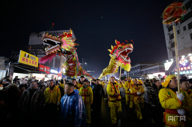 央广网郴州2月26日消息(记者黄珂岚 通讯员李明华)2月24日元宵节当晚,国家级非物质文化遗产项目——“宜章夜故事”巡演活动在湖南省郴州市宜章县一六镇火热开场,现场气氛“热辣滚烫”,为群众和游客送上别具特色年味的“文化大餐”。
