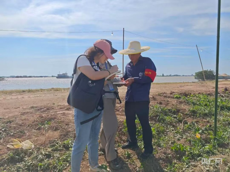 记者在钱团间堤采访村民(央广网记者 杨清 摄)
