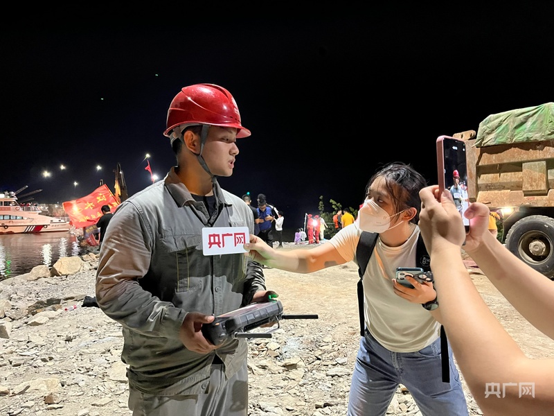 “最新消息:目前剩余14米,有望在今晚或9日凌晨实现合龙!”夜晚的大堤不像白天热气蒸腾,一阵风吹过带来丝丝凉意,让我的心情愈发忐忑,密切关注最新消息。22时31分,决堤近77小时后,“决口完成封堵、成功合龙!”我们在现场见证了这一时刻,第一时间完成快讯发布。