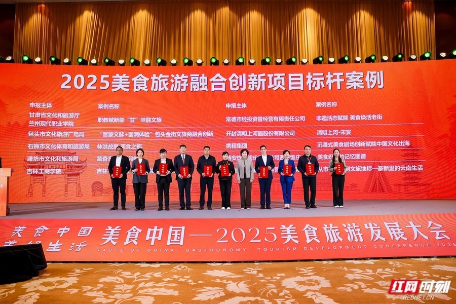 在12月21日举办的2025美食旅游发展大会上,多项行业成果集中发布。大会发布了《2025中国美食旅游发展报告》《2025湖南美食旅游发展报告》,并公布了2025美食旅游战略推广活动、2025美食旅游融合创新项目标杆案例名单,以及“2025湖南热门美食旅游目的地”和“2025湖南旅游美食好吃榜TOP100”。