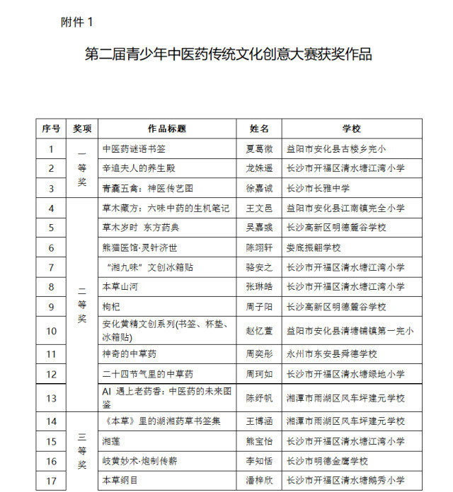 记者12月24日从湖南省中医药管理局获悉,全省第二届青少年中医药传统文化创意大赛结果已出炉。