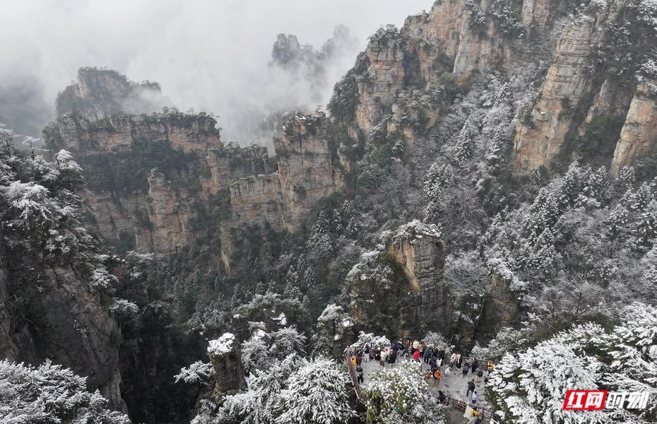 新年第一天,雪后的张家界国家森林公园杨家界景区云雾缭绕。吴勇兵/摄