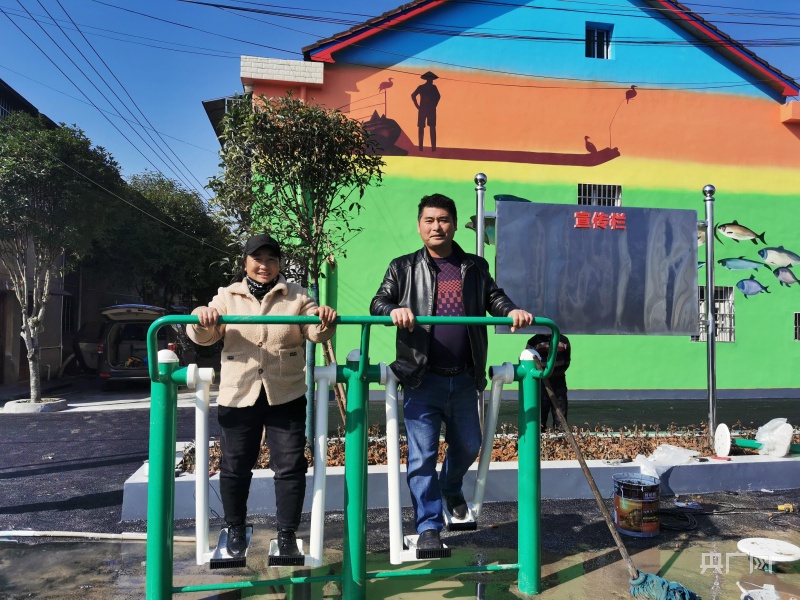退捕渔民杨志明夫妻在幸福屋场健身。