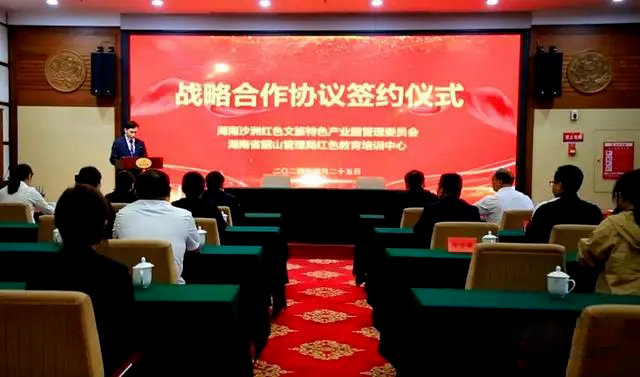 4月25日,沙洲红色文旅产业园管委会与韶山管理局红色教育培训中心签订战略合作协议(汝城县委宣传部 供图)