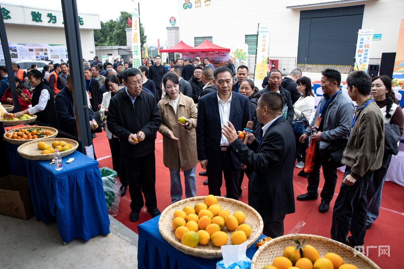 央广网娄底11月6日消息(记者 黄珂岚 通讯员 王桂林)金风送爽橘飘香,产销联动富农乡。11月6日上午,以“金秋品‘柑’甜‘橘’造致富链”为主题的湖南涟源市第四届柑橘采销季活动在桥头河镇珠璜村娄底祥兴农业股份有限公司举行。来自省、市相关部门领导,柑橘行业专家学者,省内外采销商,种植户代表等130余人齐聚一堂,共赴这场甜蜜盛会,共话柑橘产业高质量发展蓝图。