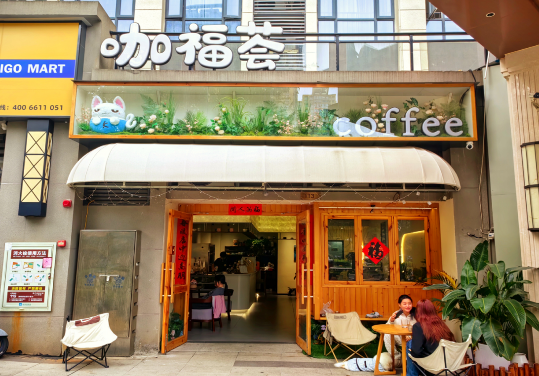 “咖福荟”的灵感,源于对“Coffee”一词的解读,寓意“福气汇聚之地”。2024年11月,这家80平方米的小店在漓湘悦小区外围一楼悄然开业。推门而入,咖啡香气扑面而来,多个台位错落有致,简约中透着温馨。