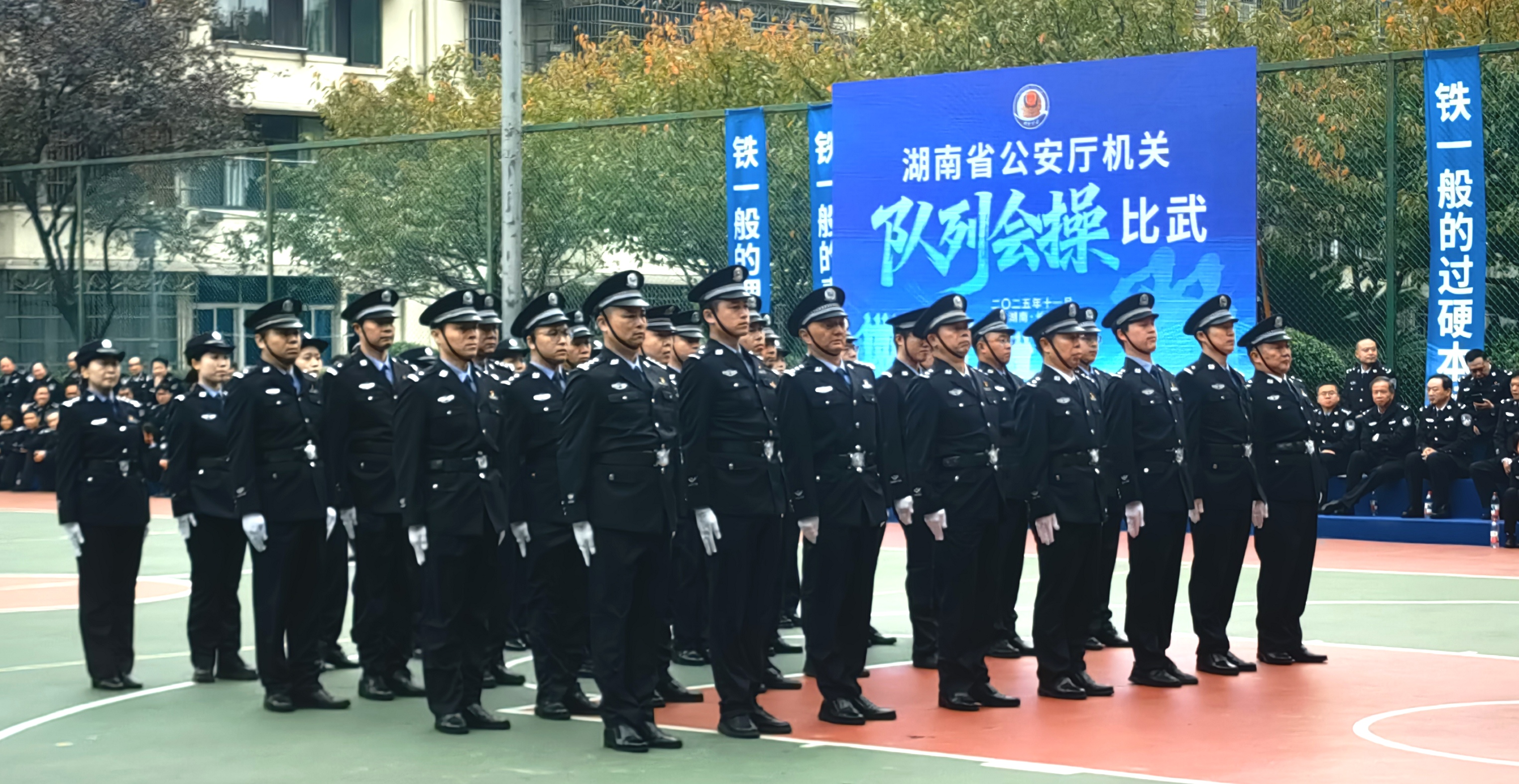 11月12日,湖南省公安厅机关队列会操比武在省公安厅操场举行。来自厅直属各单位、各警种的上千名民警,经过扎实的队列、步伐、敬礼等科目训练后,集中进行会操比武,充分展现了公安民警过硬的业务素质和精神风貌。胡立强 摄(湖南图片库)