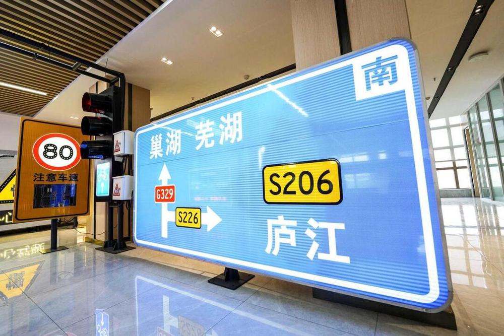 夜幕降临,湘雅路过江隧道内,全线覆盖的全透式主动发光标志为往来车辆指引前行方向。这批由湖南湘旭交安光电高科技股份有限公司(以下简称“湘旭交安”)研发制造的交通标志,夜间可视距离最远可达200米,即便在雨雾等不良天气条件下依然清晰醒目,有力提升了隧道通行安全性。
