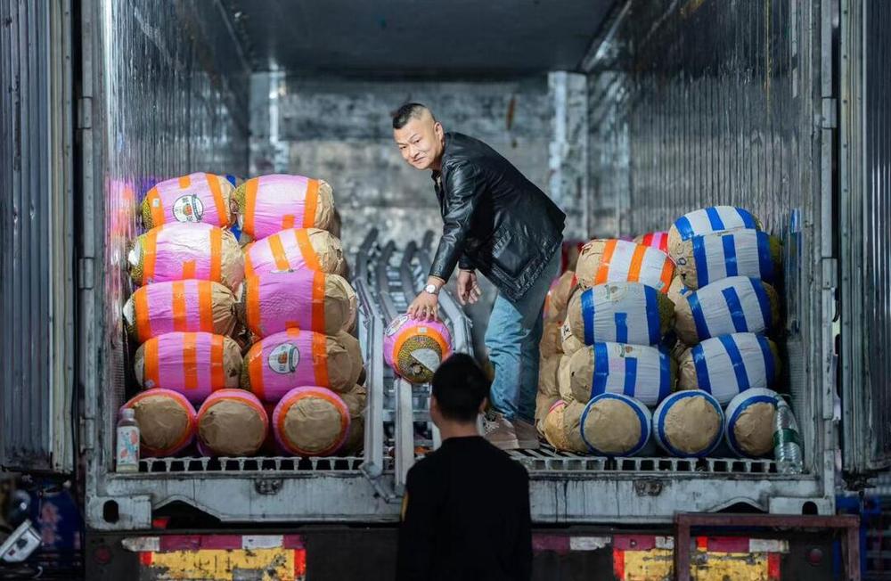 和牌菠萝蜜档口内,曹建斌正在卸货。