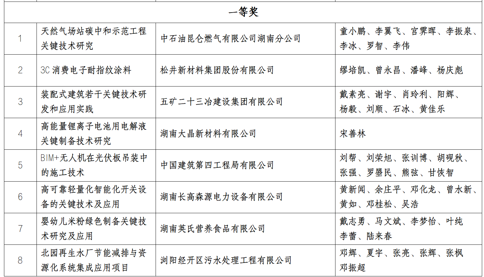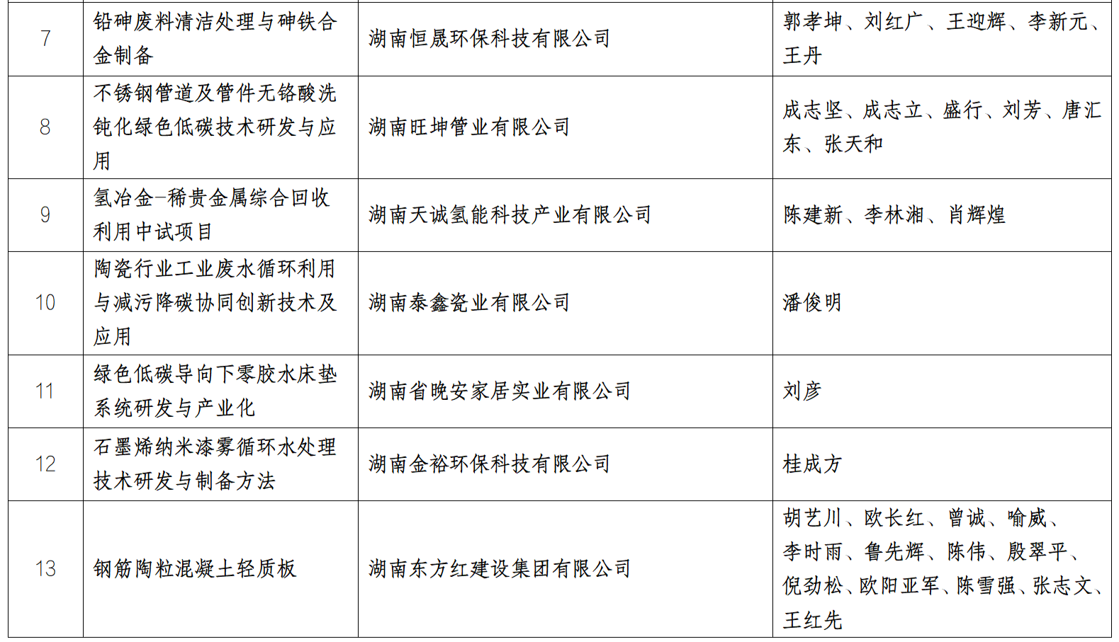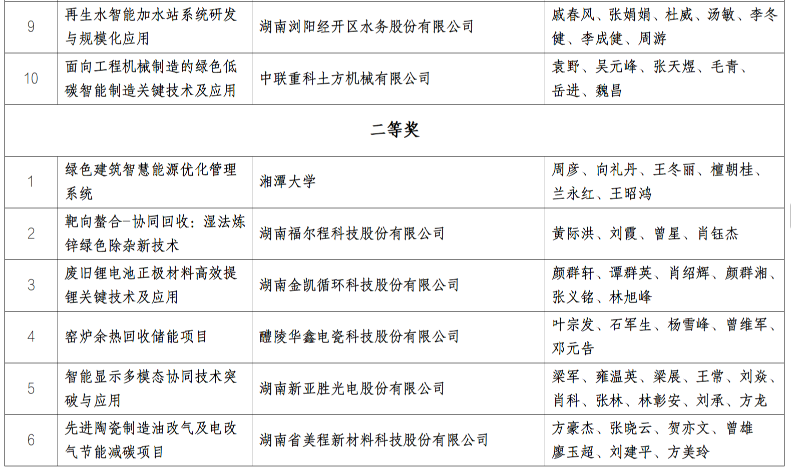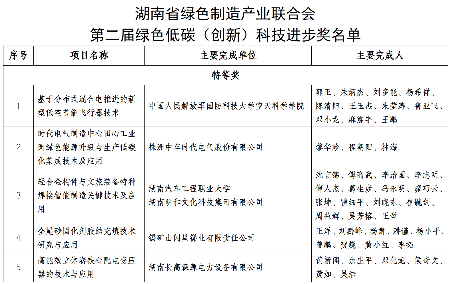 附件:湖南省绿色制造产业联合会第二届绿色低碳(创新)科技进步奖名单