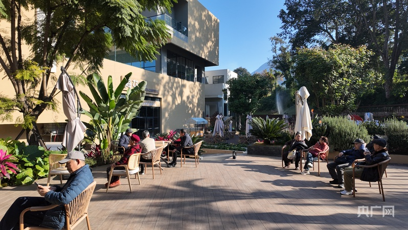 康养游客们正在惬意地沐浴阳光(央广网记者 昌思荣 摄)