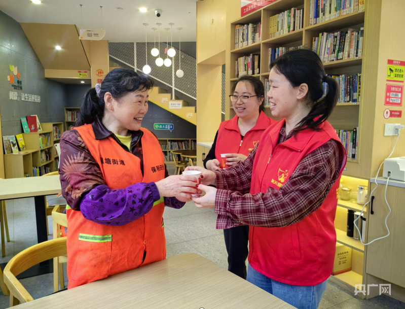 环卫工人来到驿站,管理员微笑服务(央广网发 泉塘街道 供图)