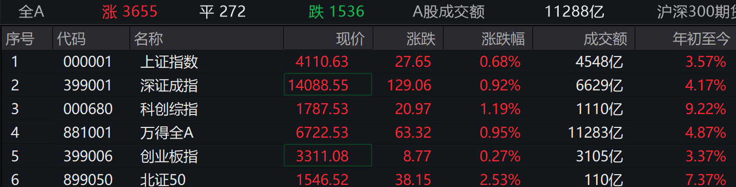 截至10点08分,沪指涨超0.68%,深成指涨超0.9%,创业板指涨超0.27%。从个股上看,市场超3600股上涨,下跌个股约1500家。